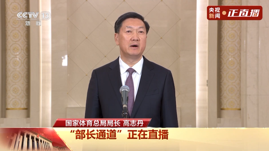 3月9日,十四届全国人大四次会议第二场“部长通道”在人民大会堂举行,国家体育总局局长高志丹接受记者采访。