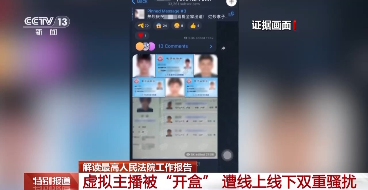 报告中提到的这起案件是,虚拟主播被两名青年“开盒”,隐私被彻底曝光,包括就医记录这种最私密的个人信息。网上的人顺着这些信息找到当事人,对其进行威胁辱骂。最后法院判了两名“开盒”者一年六个月。