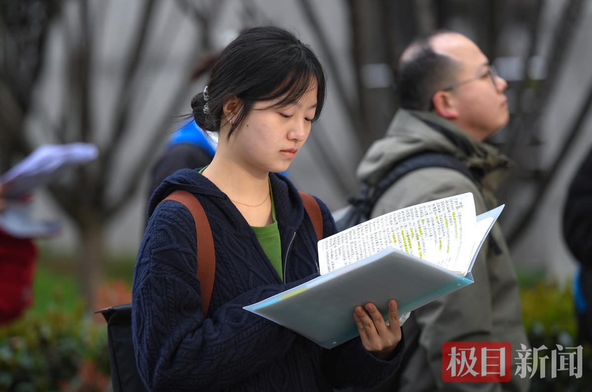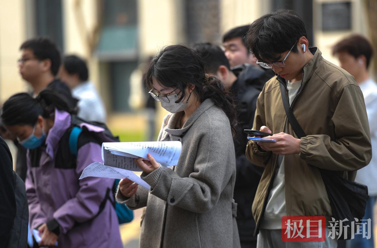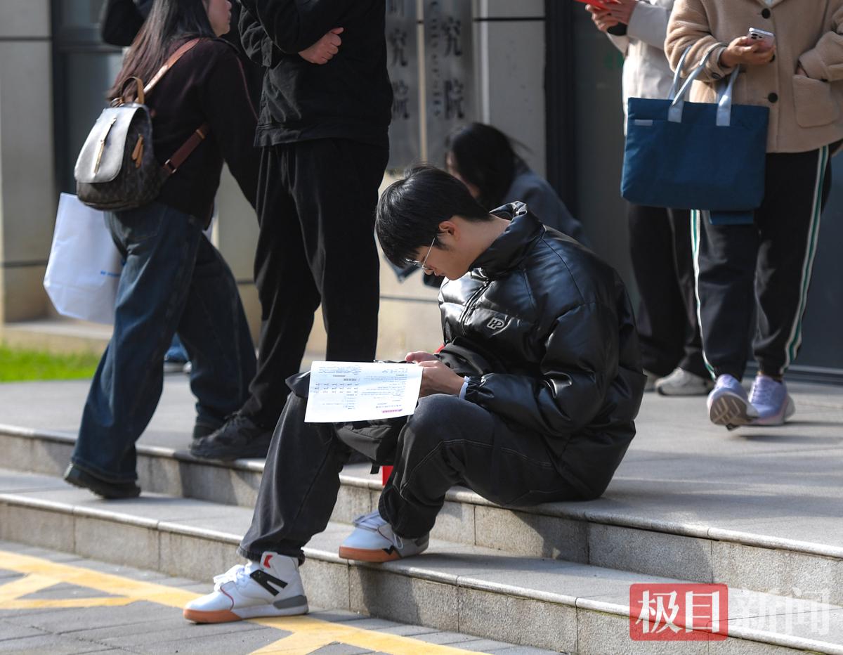 上午8时许,极目新闻记者在湖北大学考点外看到,考生们已陆续抵达,考点外处处是紧张又认真的备考身影。排队等候入场的间隙,不少考生手持复习资料、紧盯手机题库,争分夺秒梳理知识点,不愿浪费考前每一分钟。