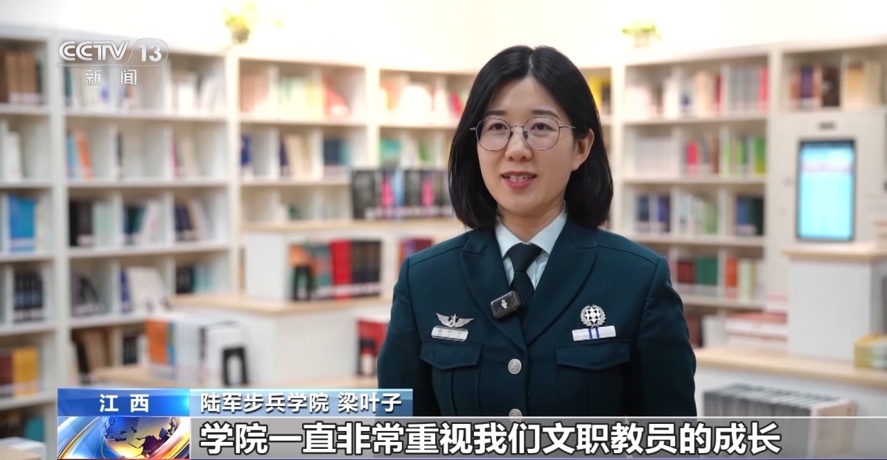 陆军步兵学院 梁叶子:学院一直非常重视我们文职教员的成长,现在已经形成了一套较为完善的培养机制,既有师徒帮带间的经验传承,还有以赛促教,实战练兵,为我们每一位教员的成长成才都铺就了坚实的道路。