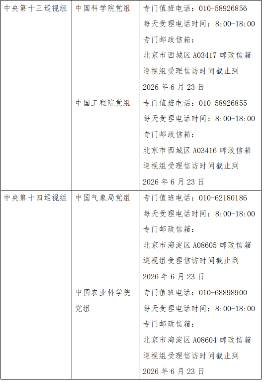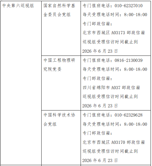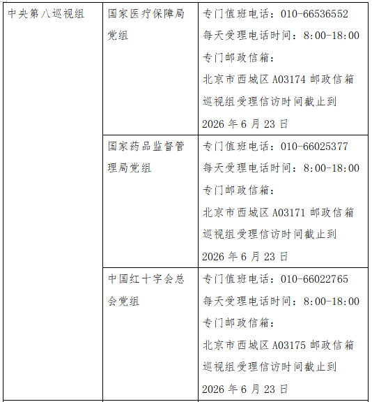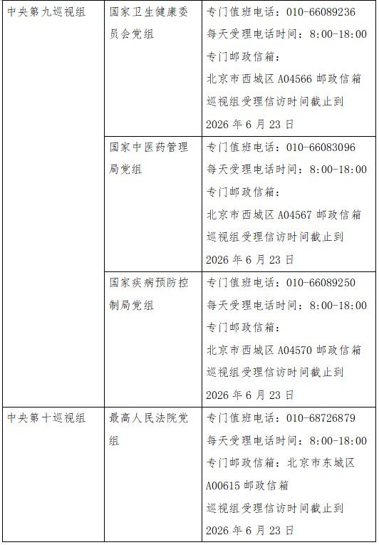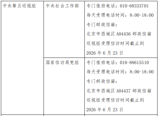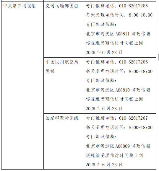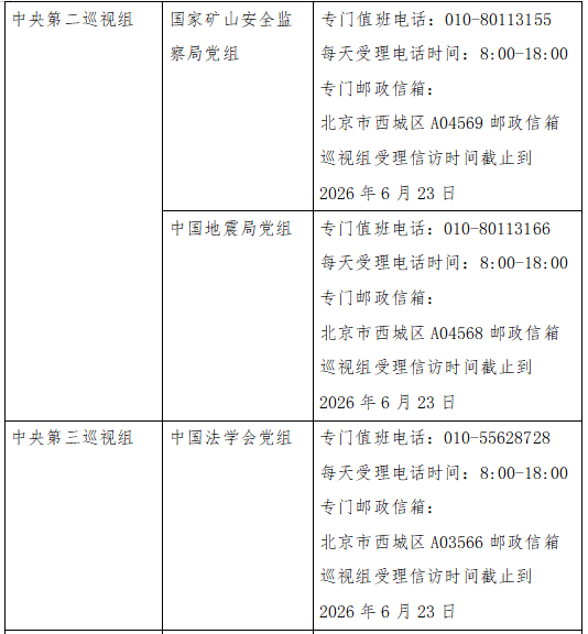 已进驻中央巡视组联络方式: