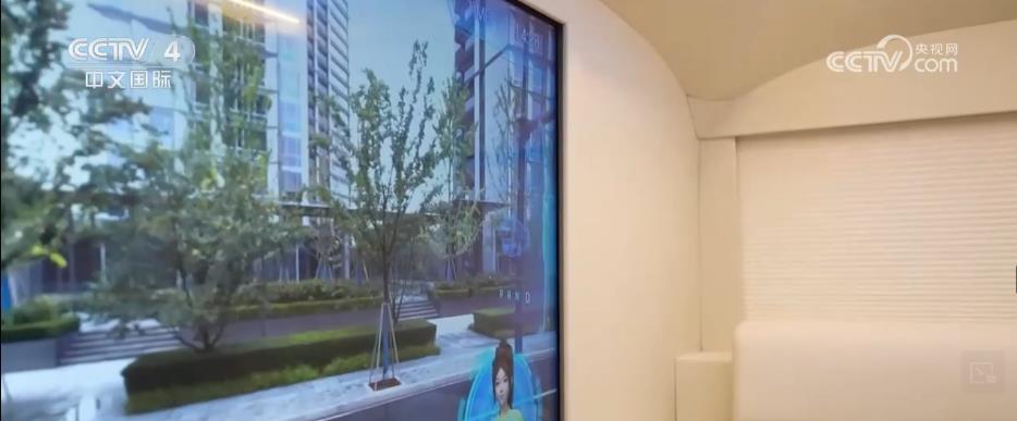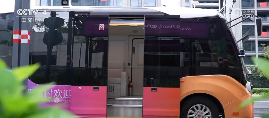 总台记者黄珊:亚运村里的AR智能巴士在全自动巡航状态下,能为乘客提供接驳、讲解的服务。正前方的特殊窗户结合车载AR功能,透过它能够看到车外的实时影像,结合虚拟场景,虚实结合,非常奇妙。