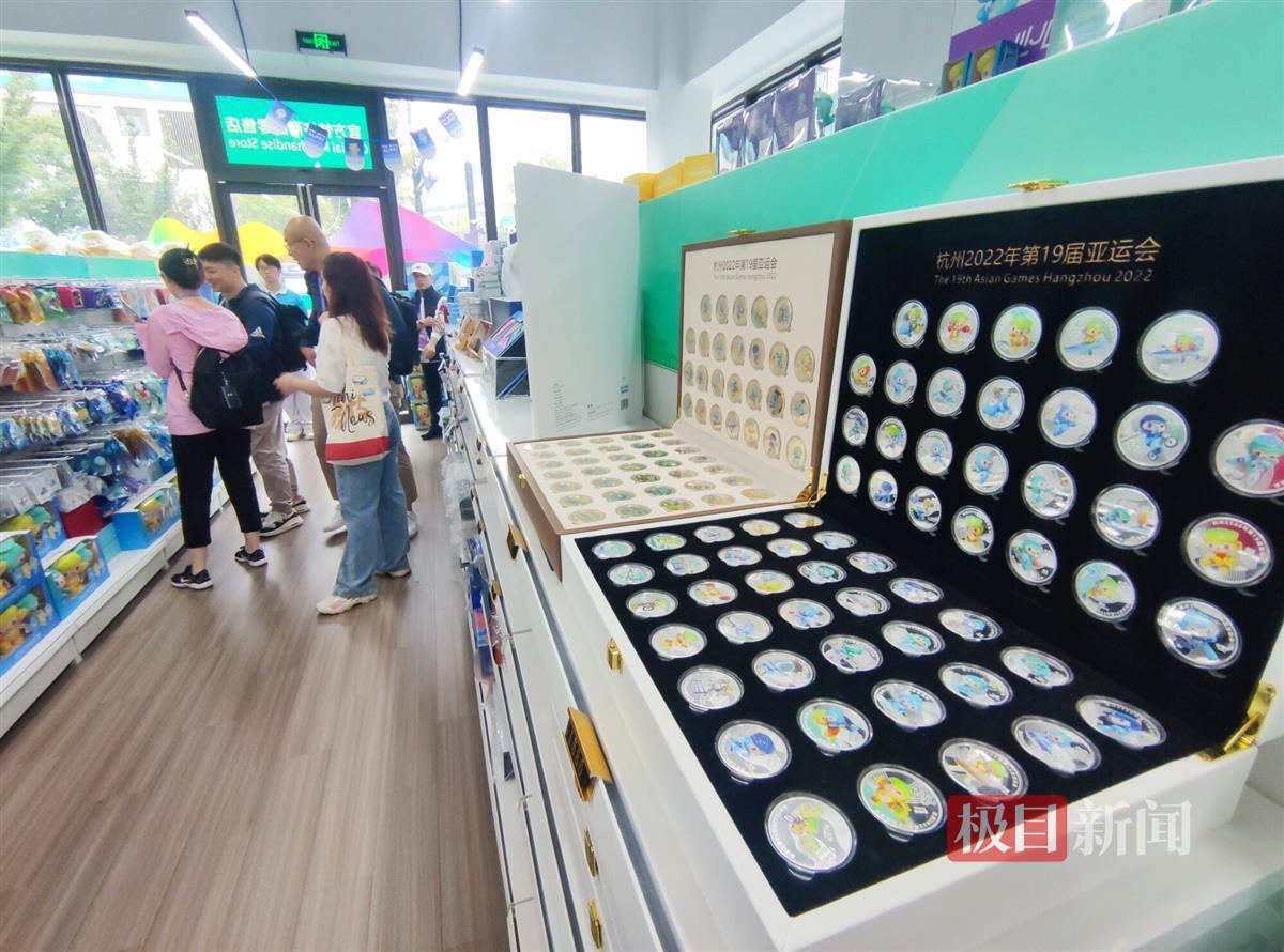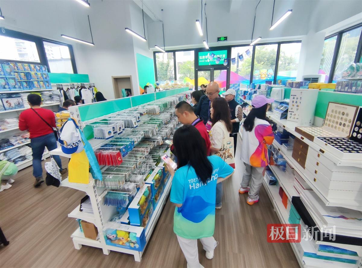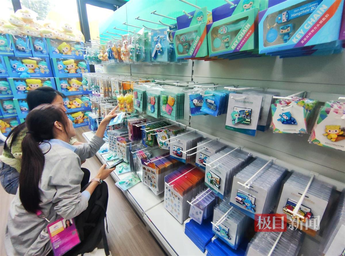 走进亚运会媒体村的纪念品商店,极目新闻记者看到,各类纪念品一应俱全,琳琅满目,“三小只”的身影可谓无处不在,其中包括徽章、摆件、丝巾、T恤、冰箱贴、毛绒玩具等,许多人正在此选购。据商店的工作人员介绍,受欢迎的是各类徽章,这也是他们准备得最多的商品,共有200多种,有的处于限购中,有的则已经买断了货。“我们正在紧急补充货源,以满足大家的需求。”