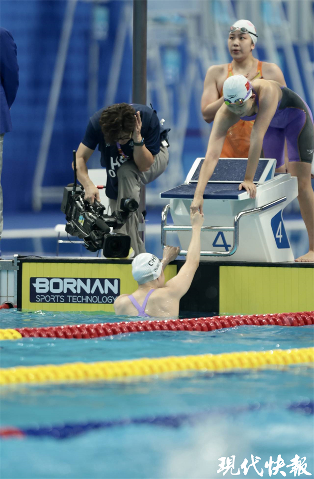 9月24日晚,在摘得杭州亚运会女子200米蝶泳金牌后,张雨霏在女子4×100米自由泳接力赛中再度出战,最后一棒登场的她,如愿与队友一起摘得金牌,斩获了她在杭州亚运会上的第二金。不到两个小时,张雨霏接连斩获两枚金牌。