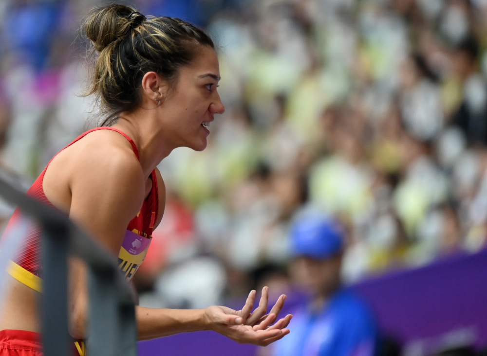 当日,杭州亚运会田径项目女子七项全能跳高比赛在杭州奥体中心体育场举行。