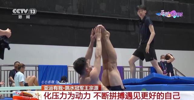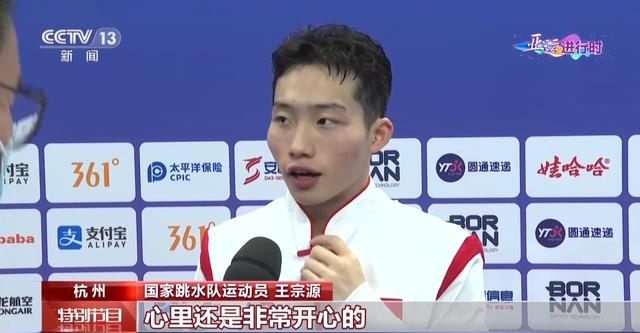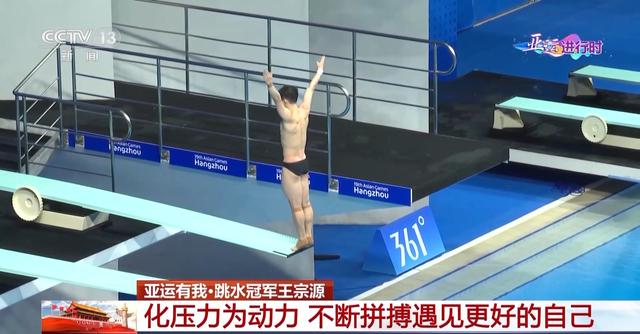 国家跳水队运动员 王宗源:整场比赛过程当中其实出现了很多问题,特别是心态上的,很明显在几个自己很拿手的动作出现了一些问题,所以导致了整场比赛只能说给自己打个五六分。最后一跳是自己立刻调动了回来,找到了自己该有的比赛节奏,所以最后一跳自己能“咬住”,才能够摘得这枚金牌。