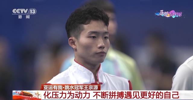 今天的亚运有我,让我们来认识一下跳水冠军王宗源。在10月2日、3日两天男子1米跳板和3米跳板比赛中,中国队的王宗源斩获了2块金牌。这是他第一次参加亚运会,虽然圆了自己的亚运摘金梦,但他希望自己能不断完善,再接再厉,在下一次赛场上遇见更好的自己。