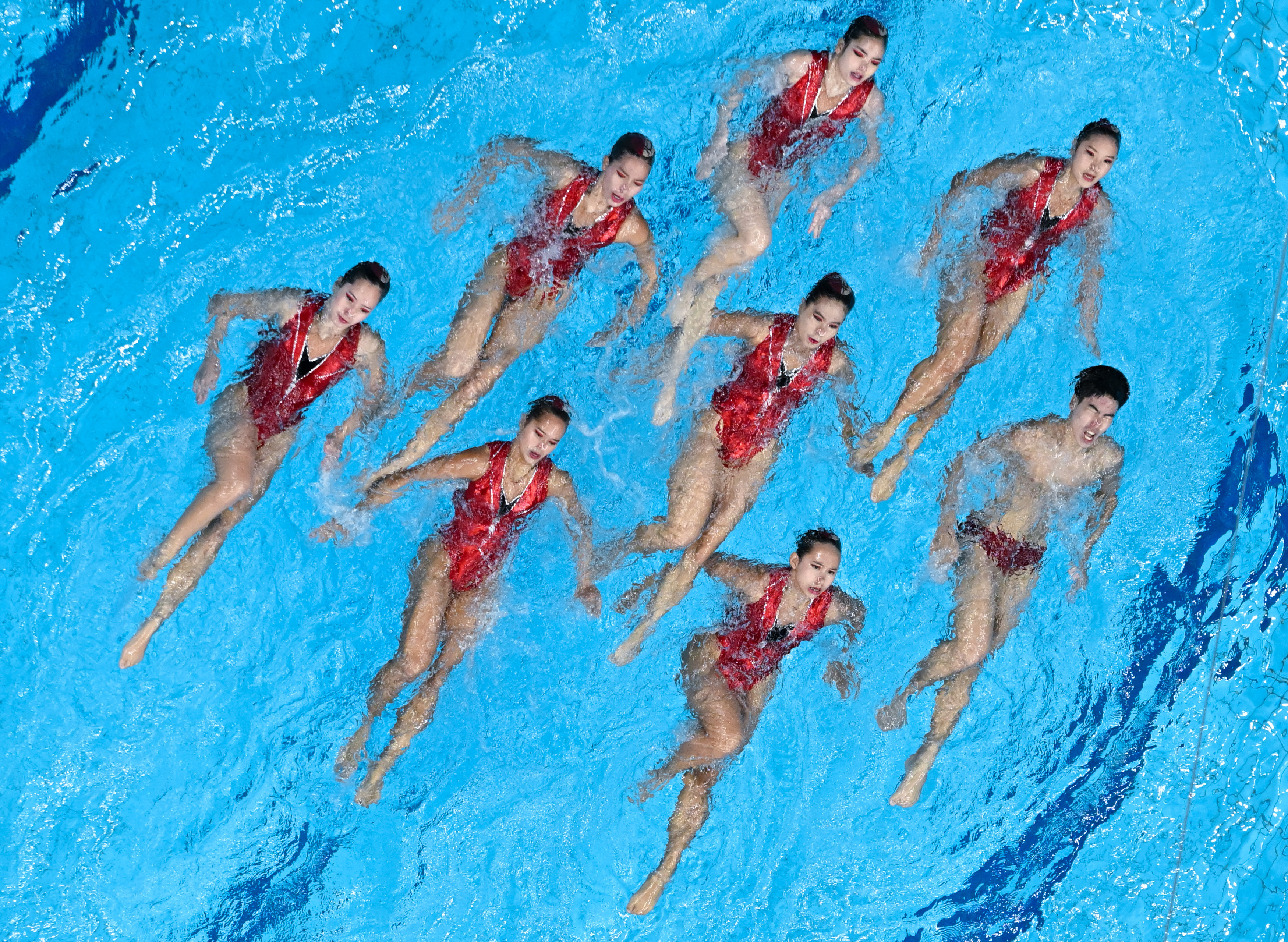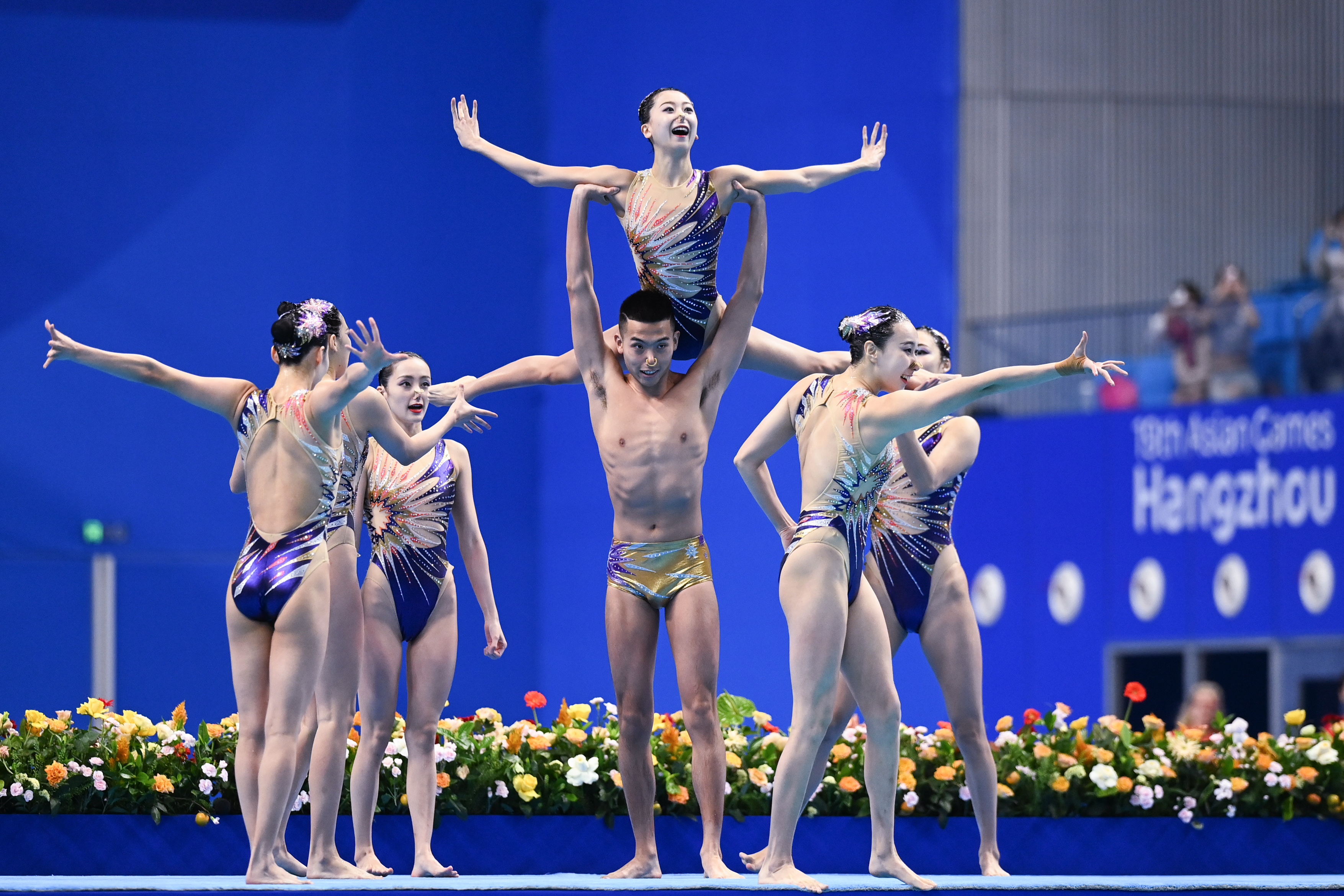 参加杭州亚运会花游集体技巧比赛的队伍共有八支,石浩玙和中国队队友以《生命之光》为主题,演绎激情与活力,他的加入让队伍的表现增添了力量感。
