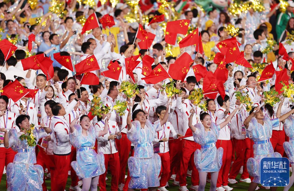 ↑中国体育代表团成员在闭幕式上。新华社记者杨冠宇摄