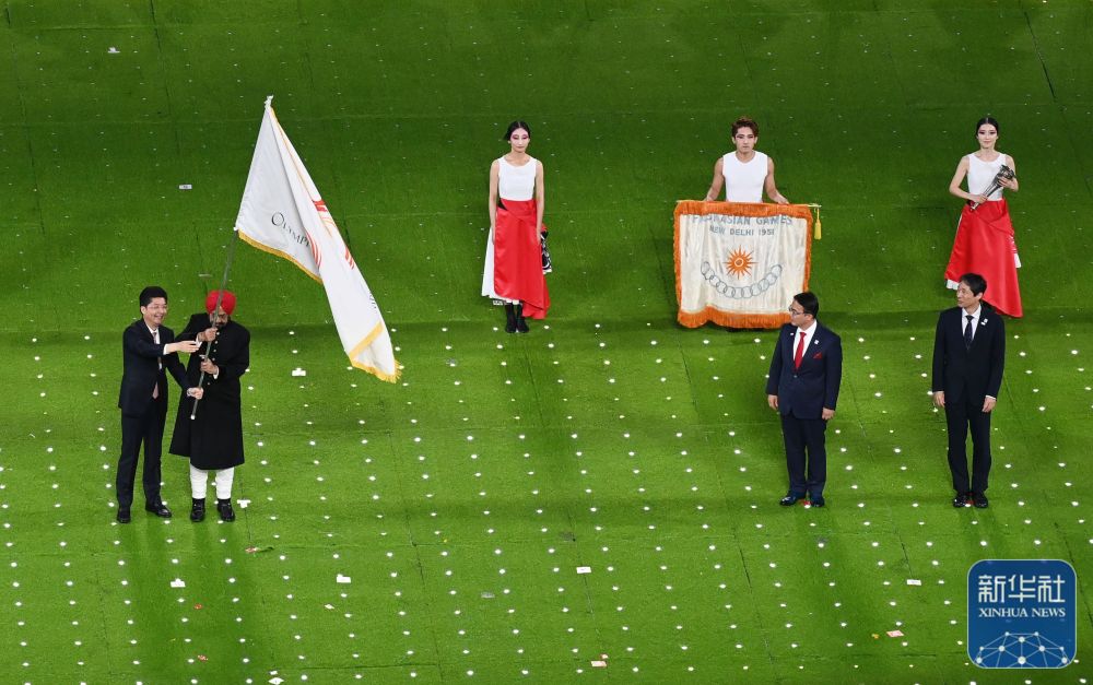 ↑闭幕式上的会旗交接仪式。新华社记者徐昱