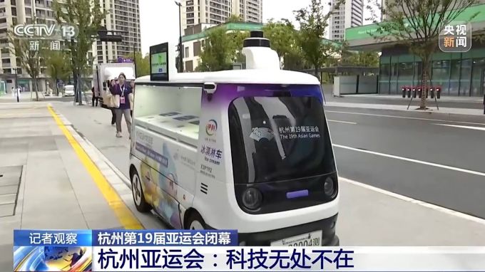 总台央视记者黄达:我的亚运关键词,今天想跟大家分享的是“科技”。从镜头中,大家可能已经猜到我们现在就在穿梭于亚运村媒体村的无人驾驶小巴上。在过去开赛前和赛时的时间里,这辆小巴不断出现在各个媒体的镜头中。