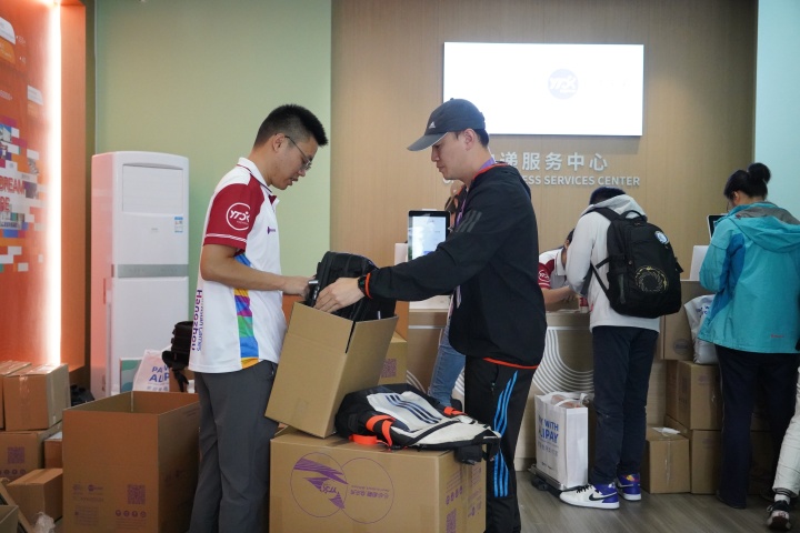 因为总想在村里买到更多东西送给女儿,所以直到临行前努万才来寄快递。他的包裹装满了对女儿的爱:除了努万从斯里兰卡为女儿带来的家乡美食和女儿需要的衣物外,他还放入了自己在媒体村为女儿精心选购的亚运礼物。