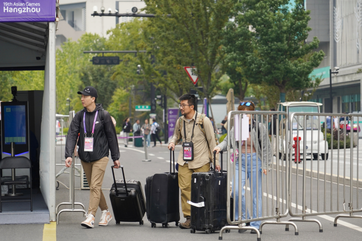 临近闭村时间,媒体村五区超级居民服务中心尤其繁忙。这里是十余天前,记者们到达亚运村的第一站。如今,推着大箱小箱的他们,又将在这里告别亚运村,奔赴下一程。