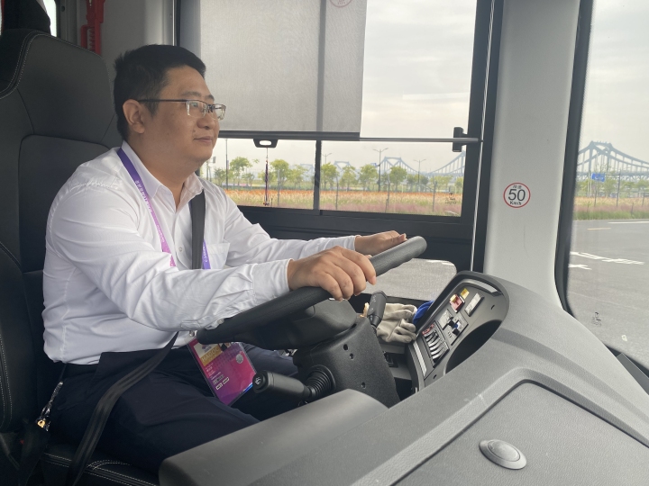 事实上,傅岳珺本身就是杭州公交公司的一名驾驶员,开车对他来说并不难。但要当好亚运司机,傅岳珺还是下了不少功夫。“从5月份开始,我们就要接受各种培训,比如熟悉线路、亚运会历史、杭州故事等。”傅岳珺坦言,最难的还是语言沟通。