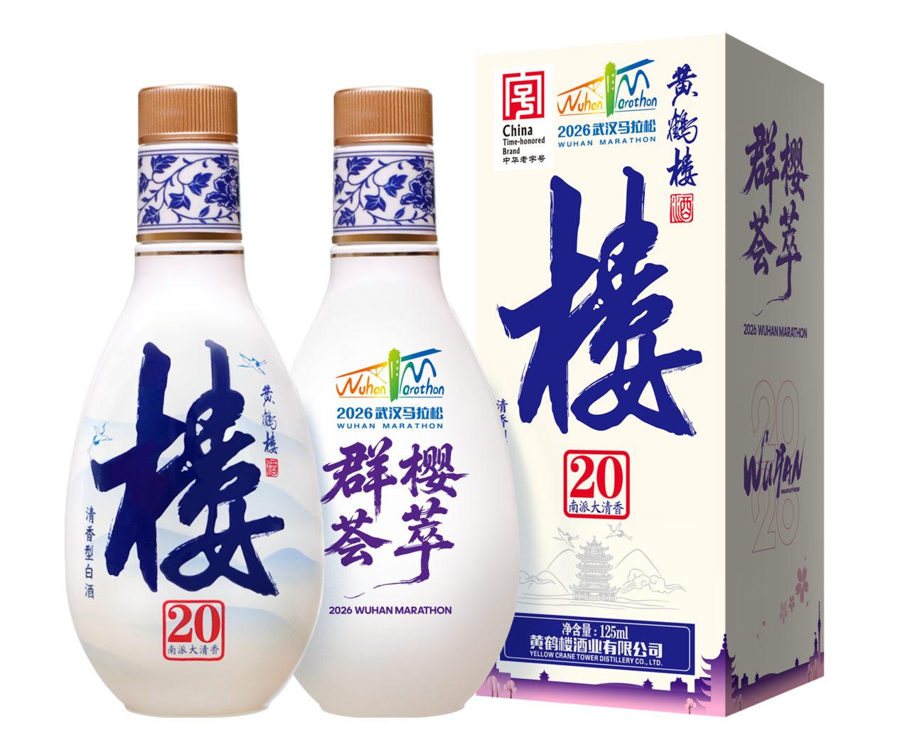 黄鹤楼酒·南派大清香楼20樱花版已经连续多年如约而至,黄鹤楼酒·南派大清香楼20汉马联名版也迎来了与武汉马拉松携手的第四个年头。