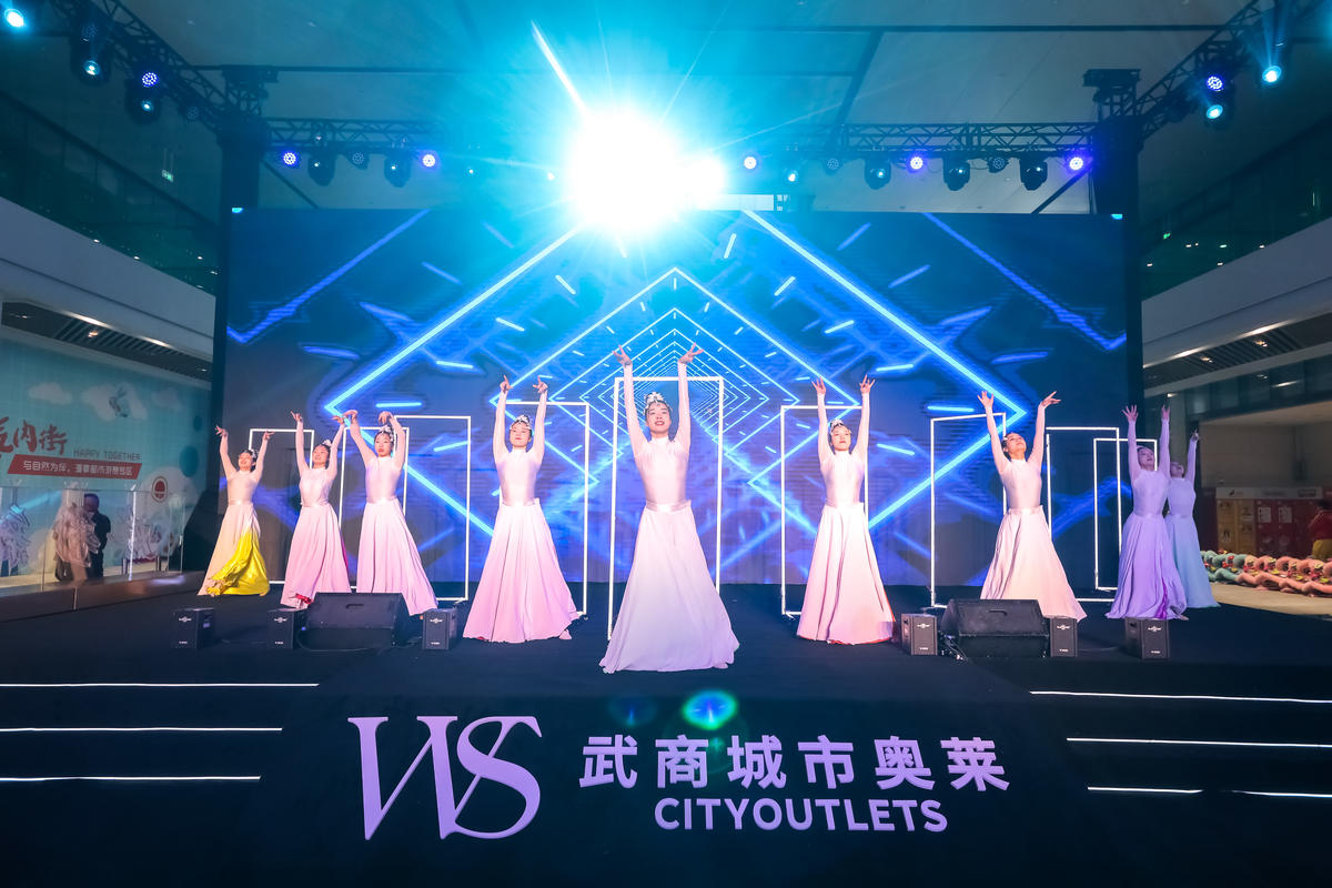 活动现场,优雅灵动的舞蹈《时空之门》,链接过去、现在和未来,融合了声光电的唯美效果,打造梦幻开场。武商城市奥莱企业宣传片的首发,充分展现了“生活方式新奥莱”带给广大消费者的全新体验。在现场观众的万分期待和热烈掌声下,8位嘉宾共同为武商城市奥莱揭幕,伴随着金水的缓缓倒入,“焕彩新生”闪耀呈现,外墙红布徐徐拉开,武商家族的新成员——武商城市奥莱的金色LOGO正式亮相,引爆现场一阵欢呼。