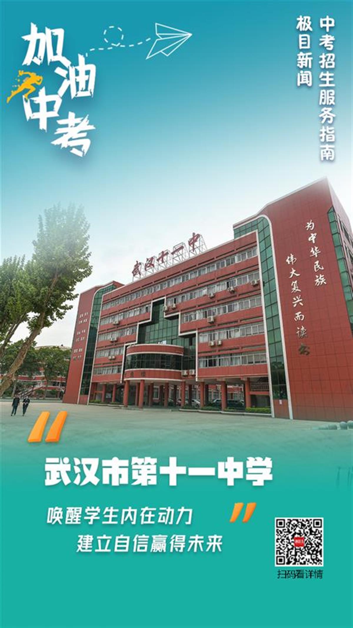 武汉市第十一中学成立于1954年,是武汉市“九大名高”之一的省级示范高中、武汉市普通高中领航学校,被授予“清华大学生源中学”“清华大学强基人才基地校”荣誉称号,培养的清华、北大学子逾百名。