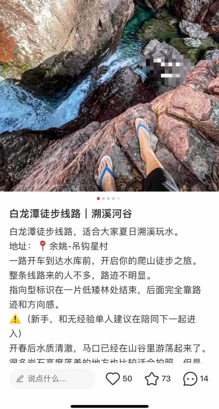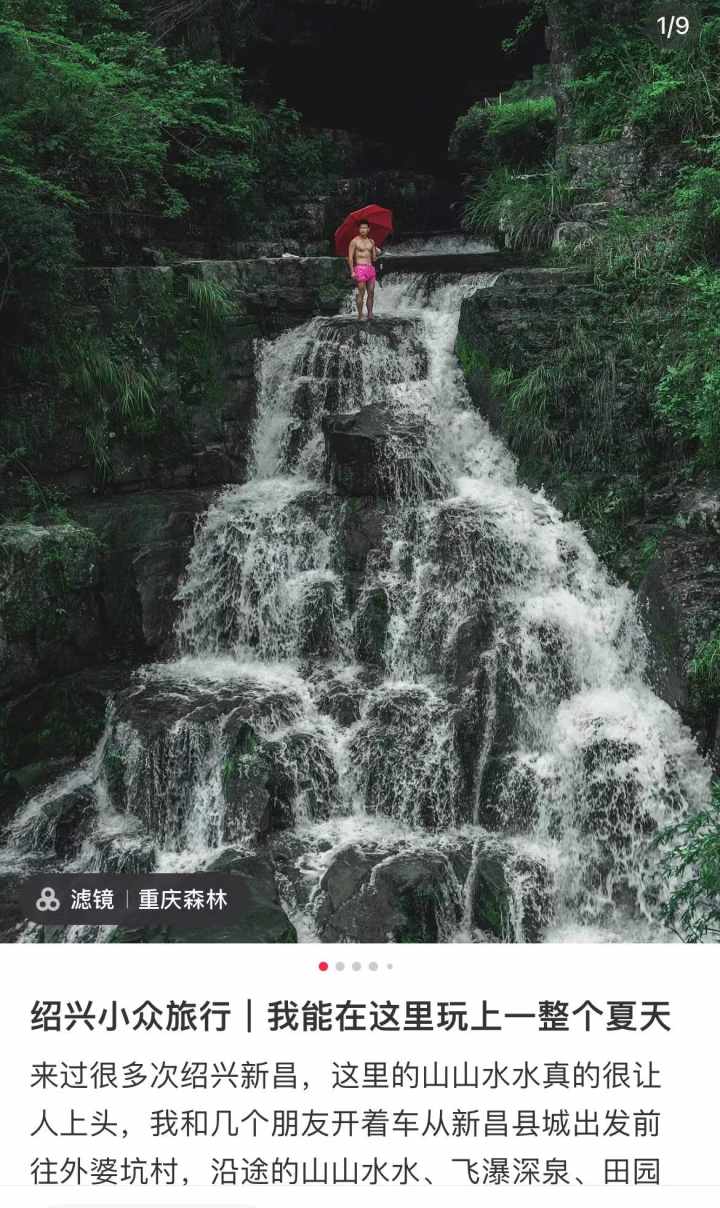 钱江晚报·小时新闻记者在整理中,看到一张站在瀑布之上的照片。标题是“绍兴小众旅行”,帖子上写着,“这是一个完全野生的瀑布,瀑布从山洞里流出,山洞是通的,瀑布在山洞里层层叠叠。沿着山洞逆流而上,仿佛来到了真正的世外桃源。”但评论区里除了各种赞美,并无其他。