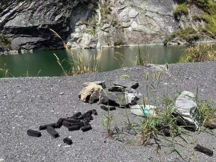 地上未用完的新炭以及固定帐篷用的石块,不远处的泥坑里清晰的车轮印和动物脚印,说明有不少人来过此地露营。然而,据该地负责人的说法,此地不对外开放,更不是旅游景点,但不知道谁来过后发到网上就火了,野营客防不胜防。