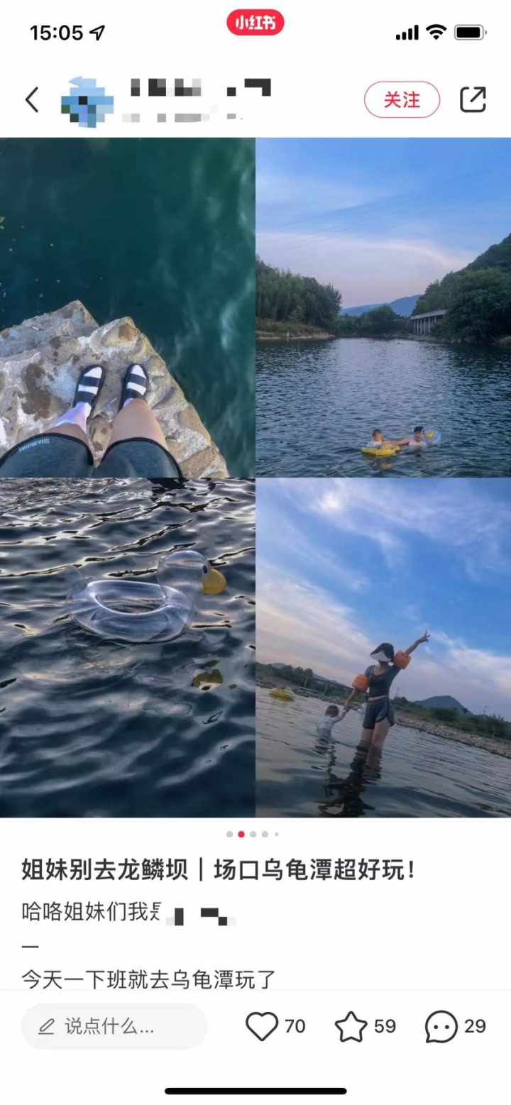 有博主安利并拍摄在乌龟潭游泳的照片。