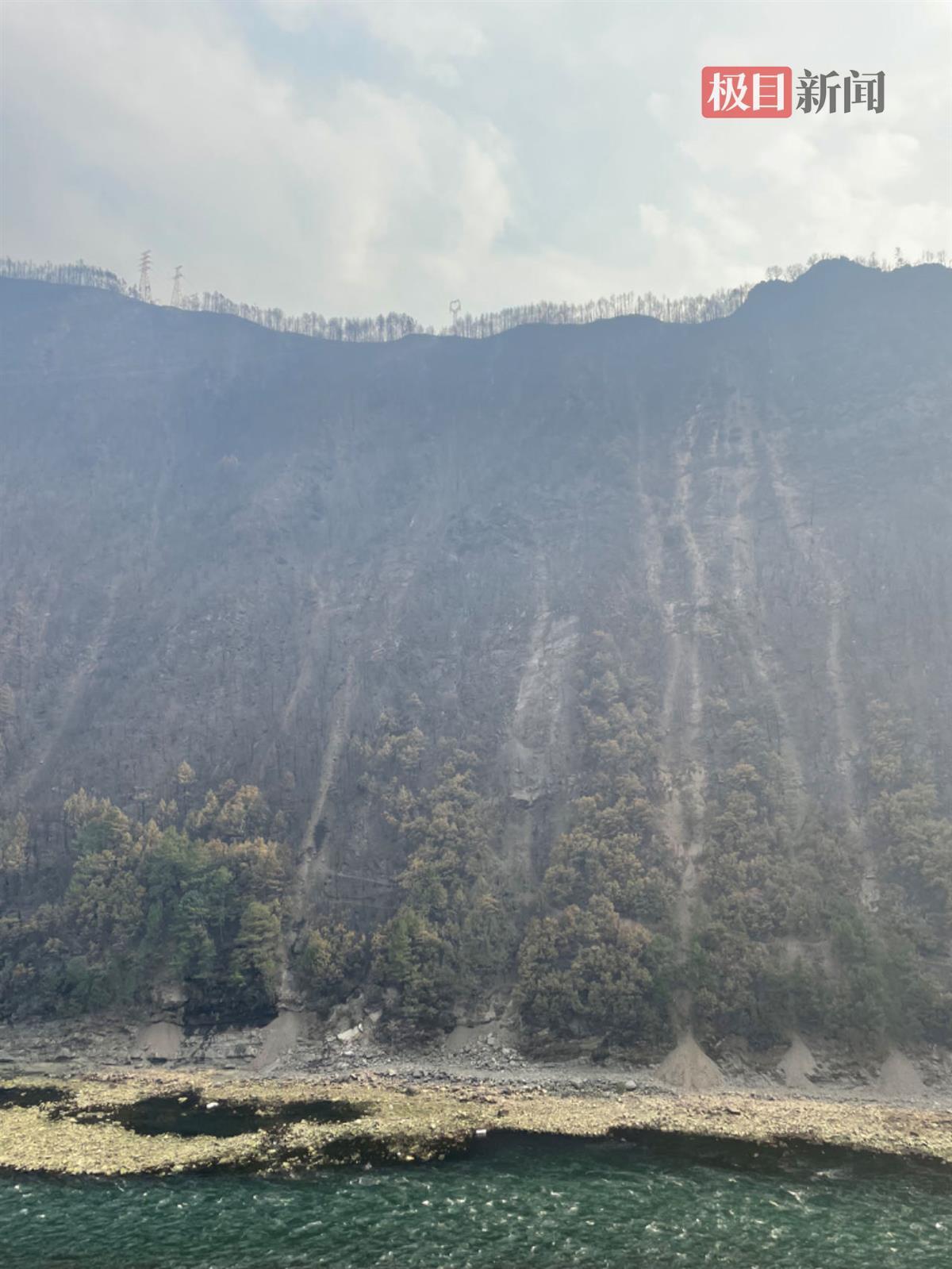 雅江县呷拉镇脚泥堡村,位于雅砻江畔,是受此次山火影响较大的村子之一。雅砻江两岸山林被山火肆虐后成片漆黑,有村民房屋被山火烧毁。