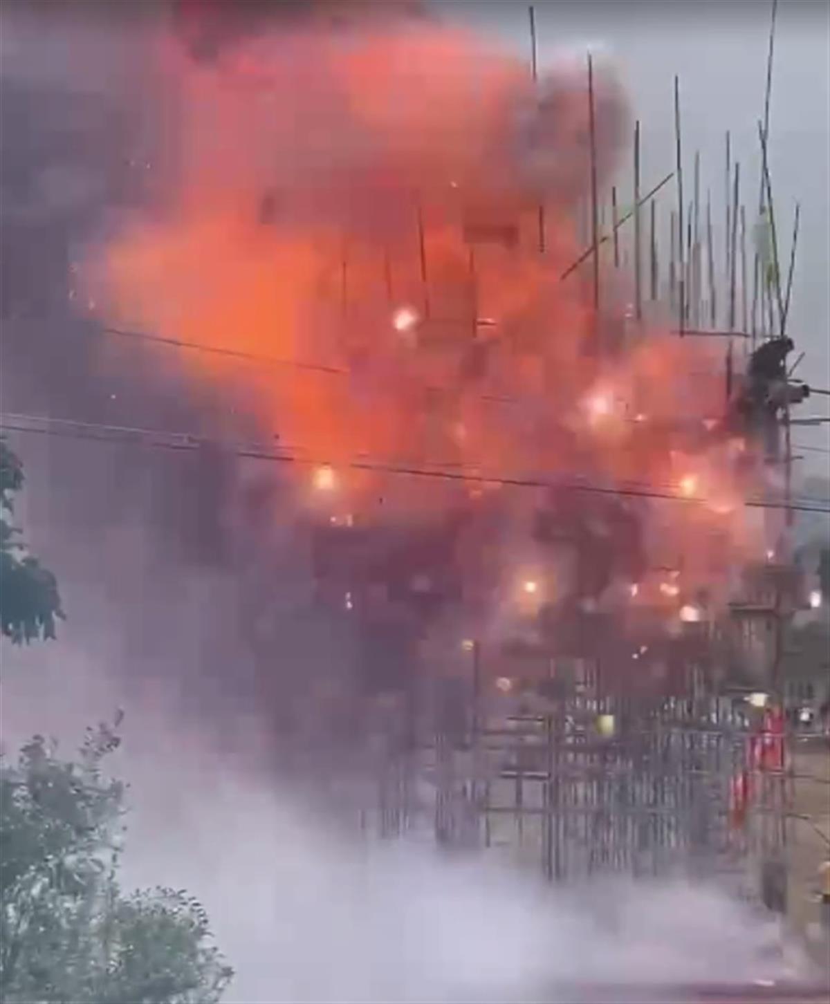 “炮台”上大量鞭炮瞬间炸响(视频截图)