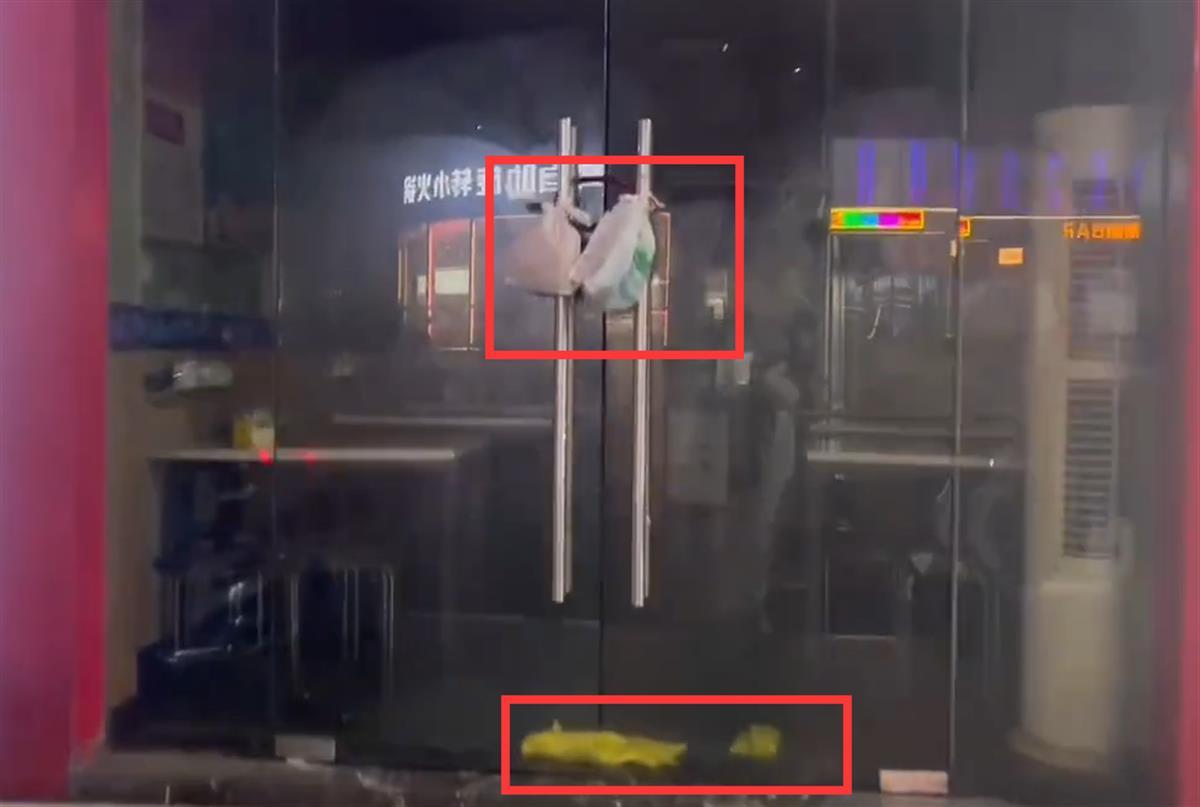 视频显示,一家挂有“千里香馄饨”招牌的店铺已经闭店,门上挂有两个用塑料袋装的物品,外卖订单上显示为“祭祀用品”,店内地上还有几张黄色的纸钱。
