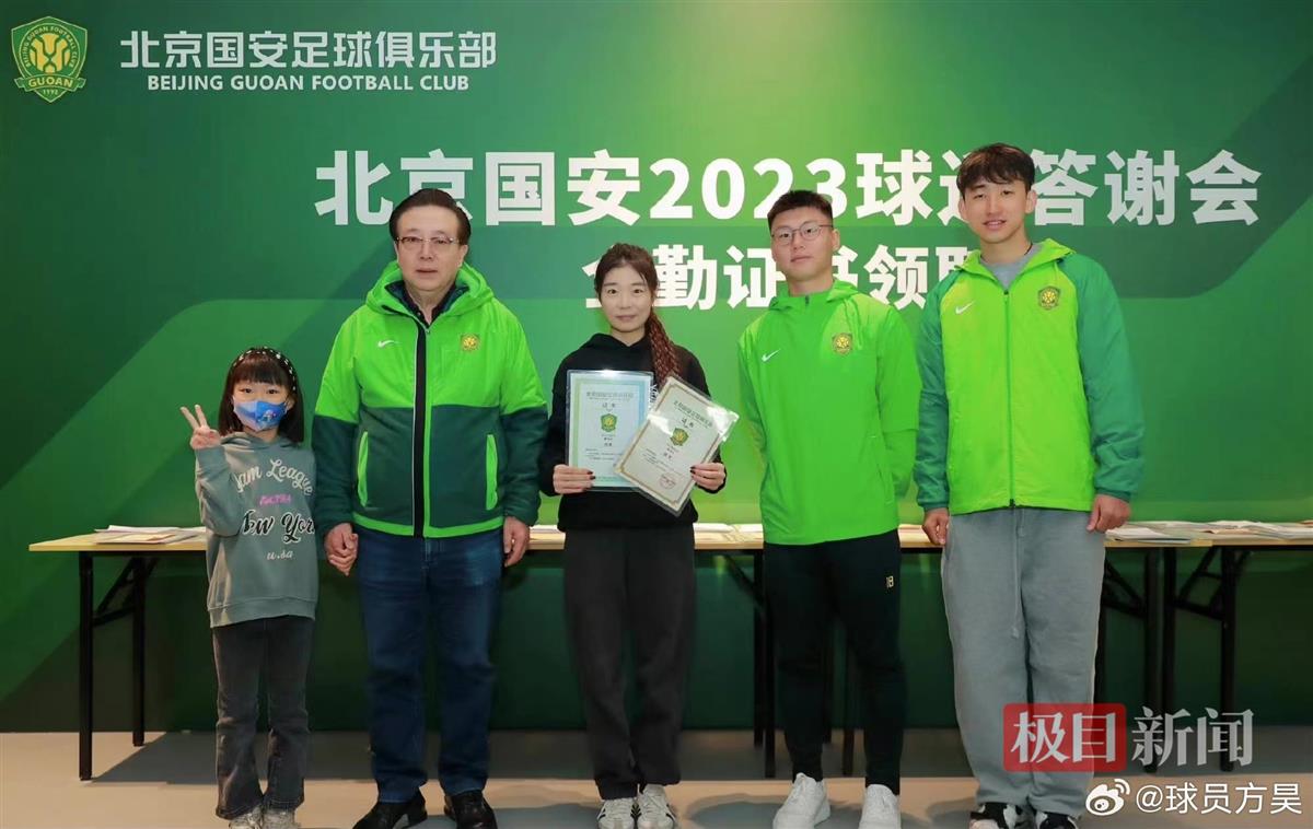 杨雪(左三)去年获颁国安“全勤奖”(图源:方昊微博)