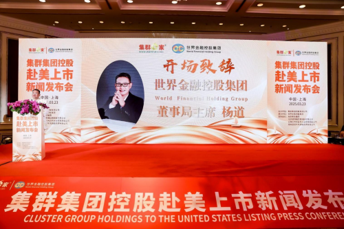 随后,作为集群集团赴美上市的辅导方,世界金控集团董事局主席杨道博士在发言中强调:“集群集团凭借其独特的社区O2O物联网服务平台模式,以及创新的供应链和消费服务模式,在美国资本市场备受瞩目。我们非常荣幸能够与集群集团携手,共同走过赴美上市的每一步。未来,世界金控将继续作为集群集团的坚强后盾,为其在全球资本市场的每一步发展保驾护航。”