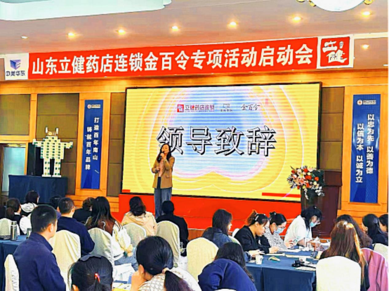 山东立健药店连锁有限公司左经理作为本次活动最高负责人出席并致辞,他指出:“本次与中美华东的战略合作,是构建‘社区健康服务新生态’的一次重要实践。它标志着我们正共同推动药店从传统的健康‘供给站’,向能够提供精准解决方案和全程管理服务的‘枢纽站’进行战略升级,其核心价值在于为消费者构建一个‘家门口’的专业健康支持体系。”