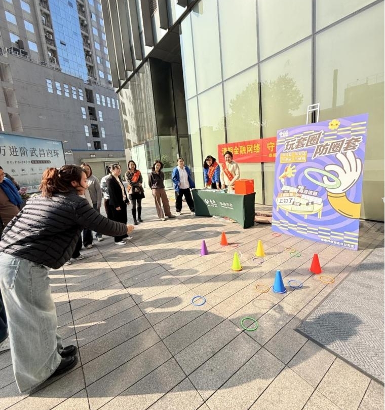 泰康养老湖北分公司的工作人员精心设置了两大互动游戏,“金融消费者八大权利沙包挑战”将财产安全权、知情权、自主选择权、公平交易权、依法求偿权、受教育权、受尊重权、信息安全权等核心权益融入投掷答题,居民精准投中即可解锁知识点,在互动中牢记自身合法权益。“玩套圈·防圈套”以趣味游戏提醒居民警惕非法金融、电信诈骗、高额分红等金融陷阱,引导大家擦亮双眼、理性消费、拒绝高息诱惑,守住养老钱与辛苦钱。
