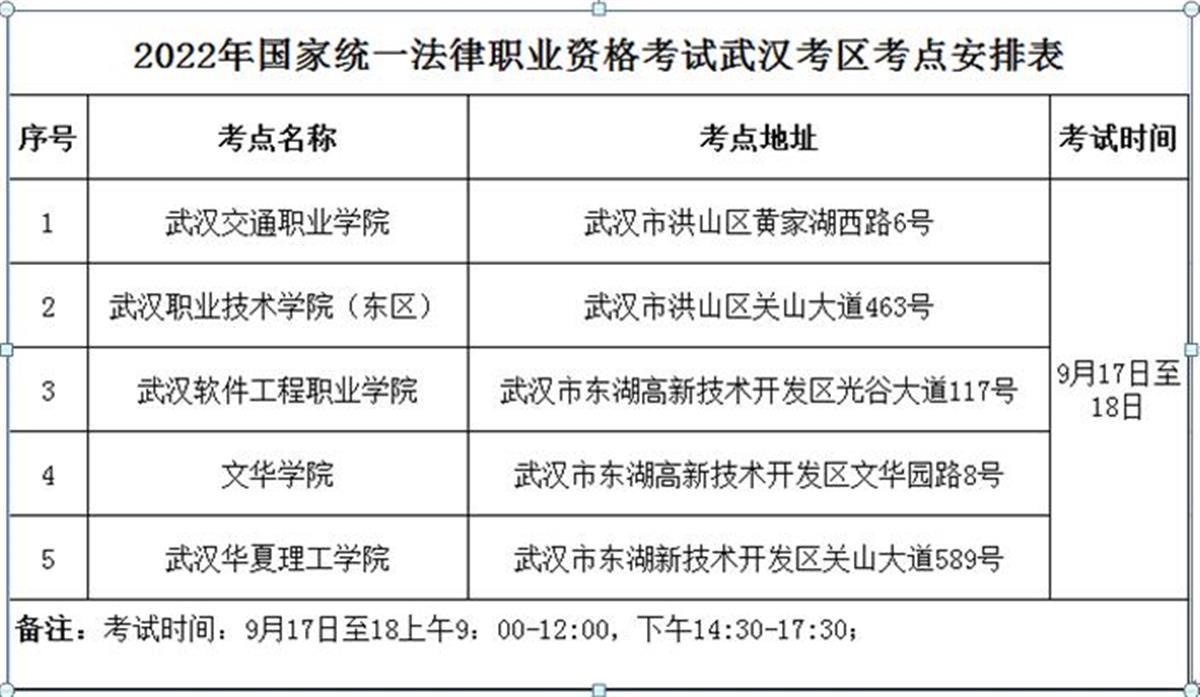 2022年国家统一法律职业资格考试将于9月17日至18日举行,武汉共设5个考点(如图),共1.5万余名考生在170个考场参加考试,主要涉及洪山及东湖高新2个考区。9月16日,武汉交警发布出行提示。