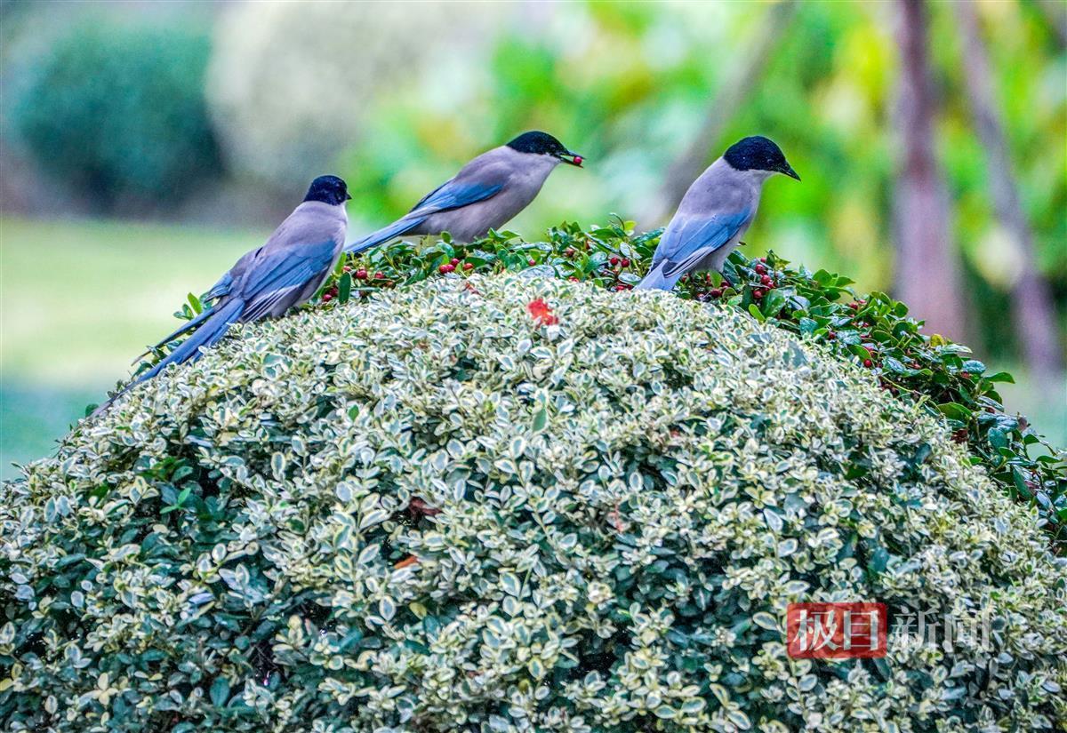 近日,随着园内树木果实渐渐成熟,聚集到沙湖公园觅食的林鸟也变得更多了起来。