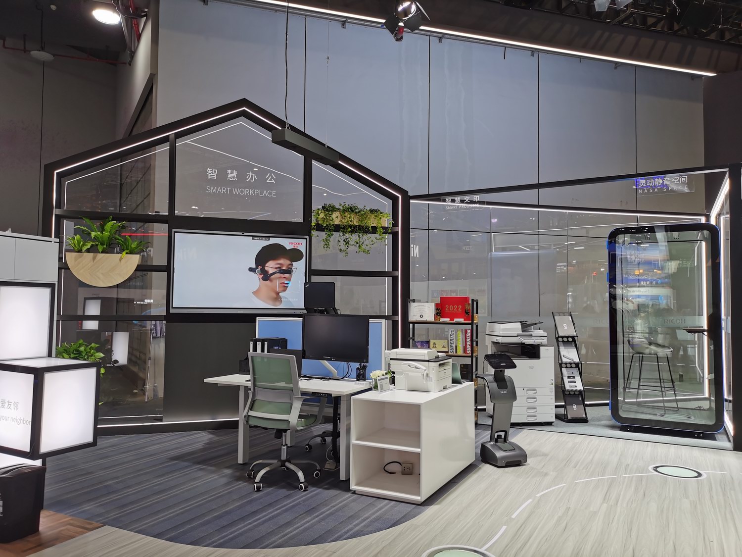同时,应对频繁出差人群及灵活办公场景的智能储物柜、提高员工舒适度的智能灯和智能升降桌、降低环境噪音提高工作效率的NASA静音仓等,也都现身“办公室”。