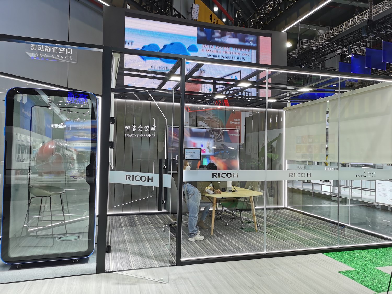 在智慧办公区域和智能会议室,两面理光商用智能会议平板映入眼帘。在疫情反复的当下,不断变化的办公环境给协同办公提出难题。理光这次参展的商用智能会议平板,能够支持本地及远程会议模式,同时还能导入第三方会议软件,实现团队协作及远程会议协同。