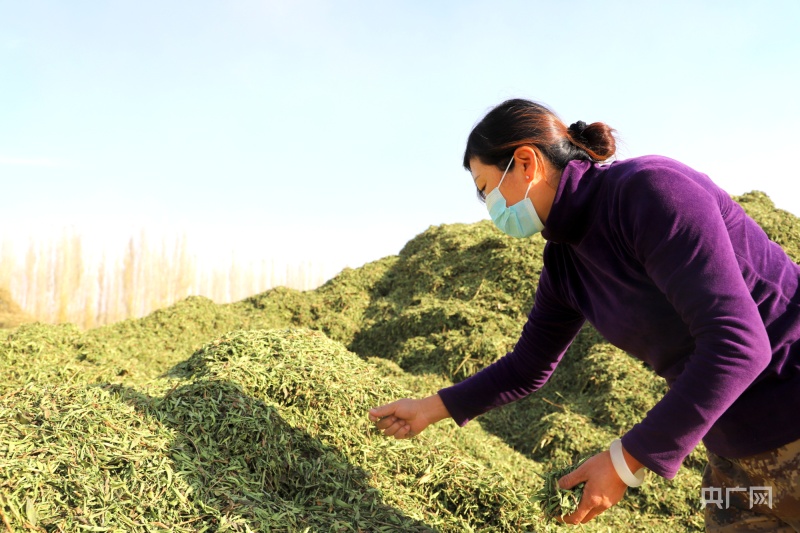 工人正在查看晒干的甜叶菊(央广网发加亚巴图摄)
