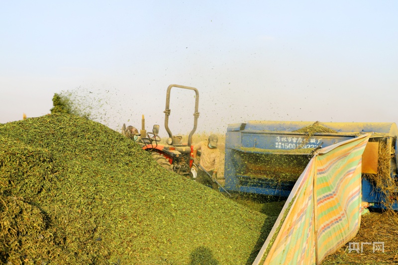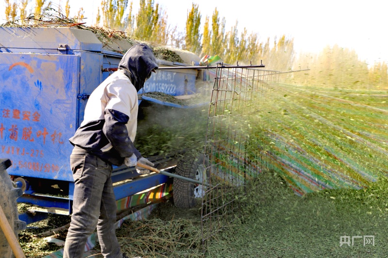 “经过半个月的晾晒,现在甜叶菊已经晾晒干了,目前就是要赶紧脱叶,等脱完叶以后直接打包发往国内其他省(区)市,今年,亩产收入可以达到2000元以上,效益不错。”赵新华表示,甜叶菊的田间管理需要简单地浇水、施肥、除草,采收的时候都是机械化采收,不需要大量的人工,同时效益可观,因此受到越来越多农户的青睐。