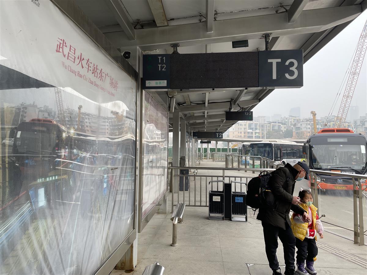 市民在武昌火车站东广场公交站点候车