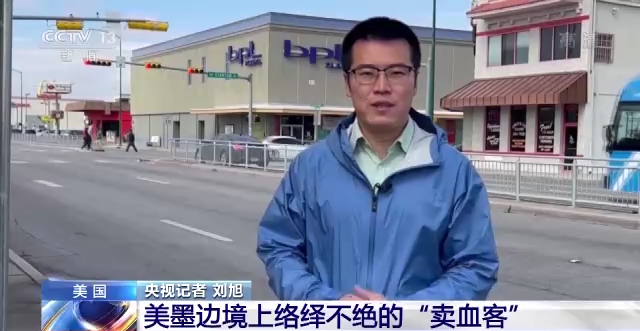 央视记者 刘旭:我身后就是一家美国最大的连锁血浆捐献中心,这里距离美国与墨西哥的边境只有一两公里的距离,每天到这里捐献血浆的人大部分都是只会讲西班牙语的墨西哥人。很多人甚至等不到当天的机会,只能第二天一大早再来排队,等待血浆捐献机会。