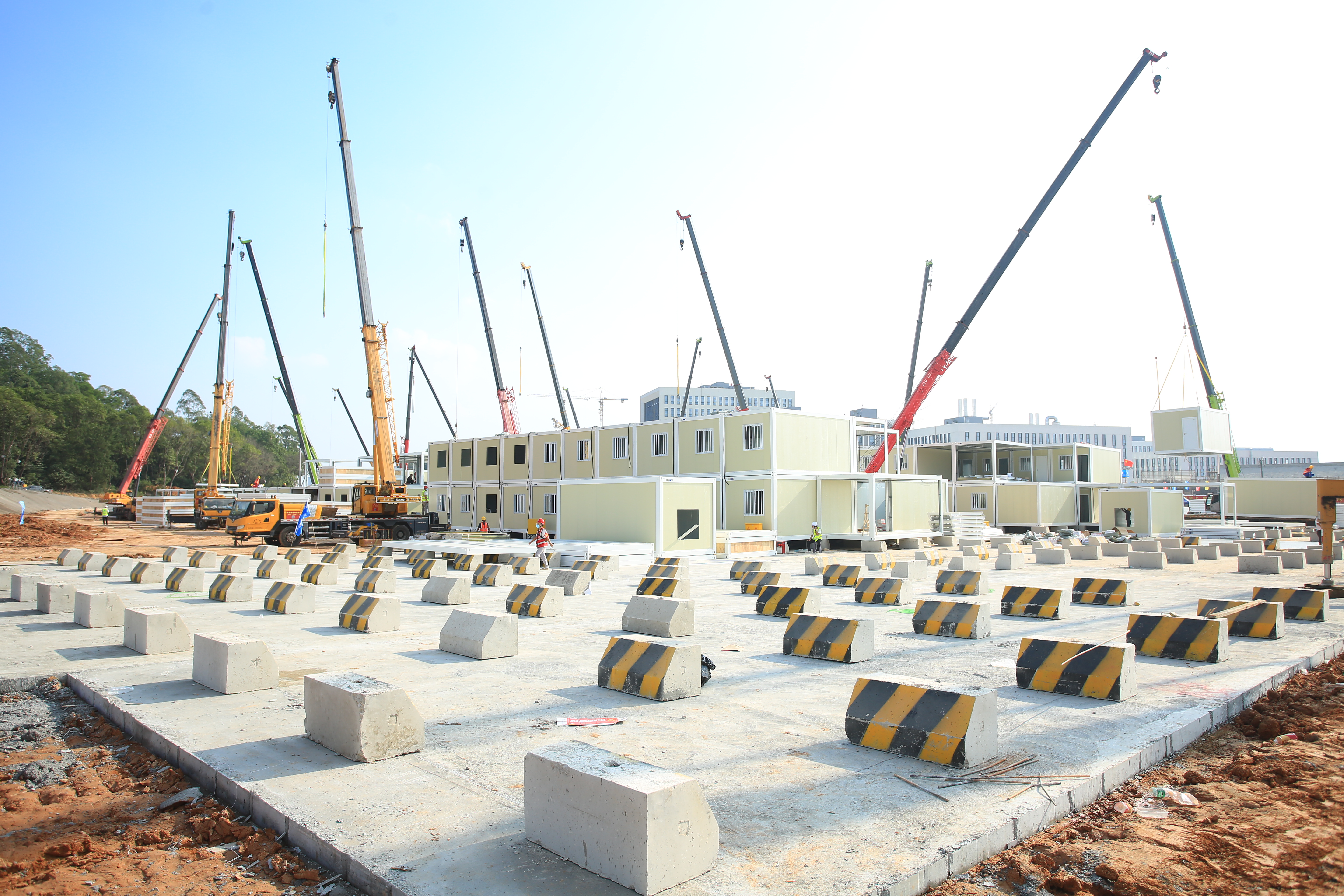 广州市天河区体育公园地块应急项目整体规划建设2565个打包箱,共7000个床位。中建四局旗下的中建珠江海外发展有限公司(以下简称珠江海外)负责建设项目东区,占地面积3.4万平方米,包括1165个打包箱,共计360个舱、4144个床位。