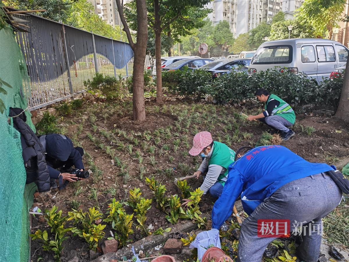 11月21日,极目新闻记者在该小区内看到,位于董家明渠边的两块“共享花园”,已种上了绿植和花卉。