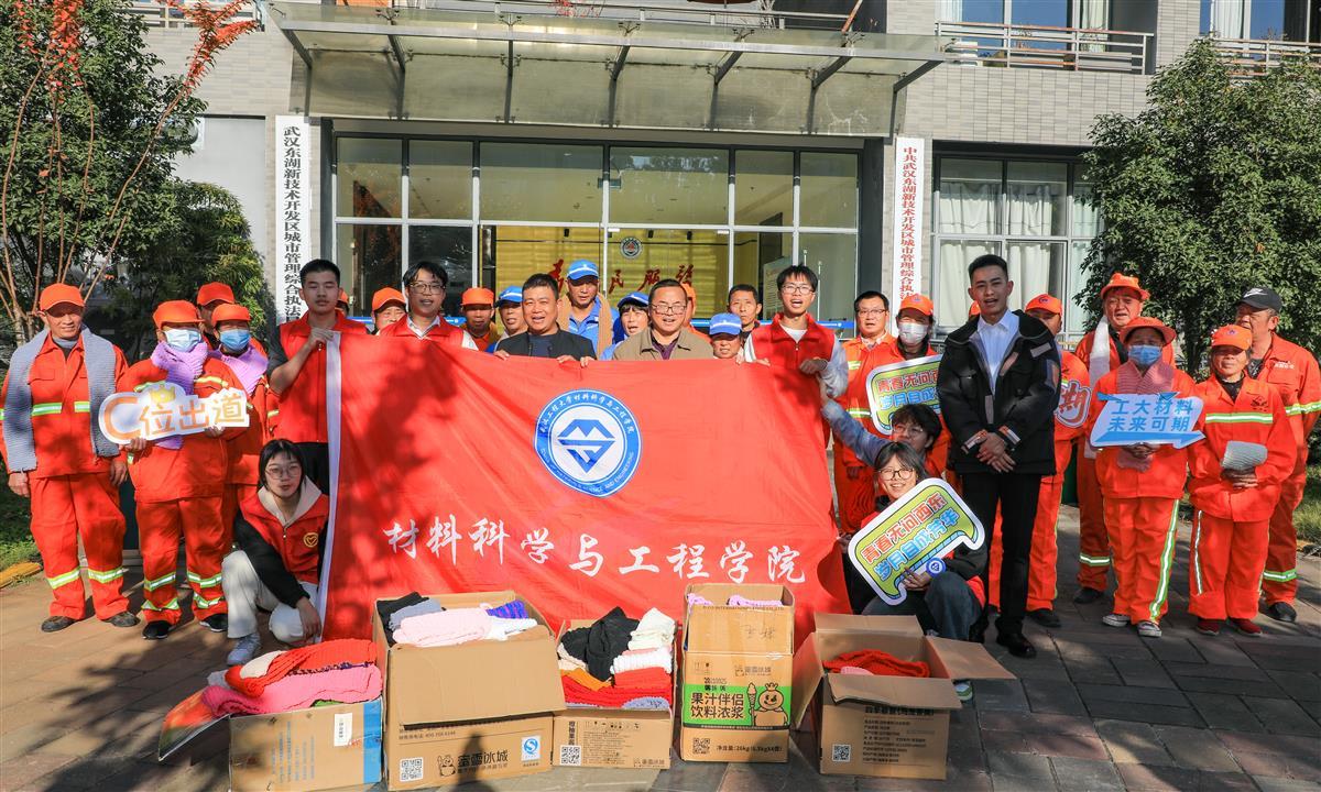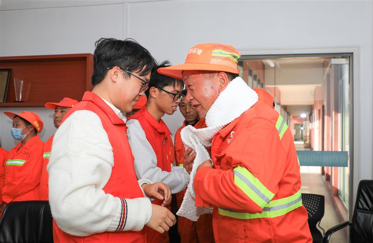 环卫工人是维护城市市容的一大主力,他们起早贪黑,默默付出。虽然天气越来越冷,但这些城市美容师依然在自己的岗位上。材料学院志愿者冯子晟表示,赠人玫瑰,手留余香,今年是第八年,相信工大学子们,会将这份温暖传递下去。