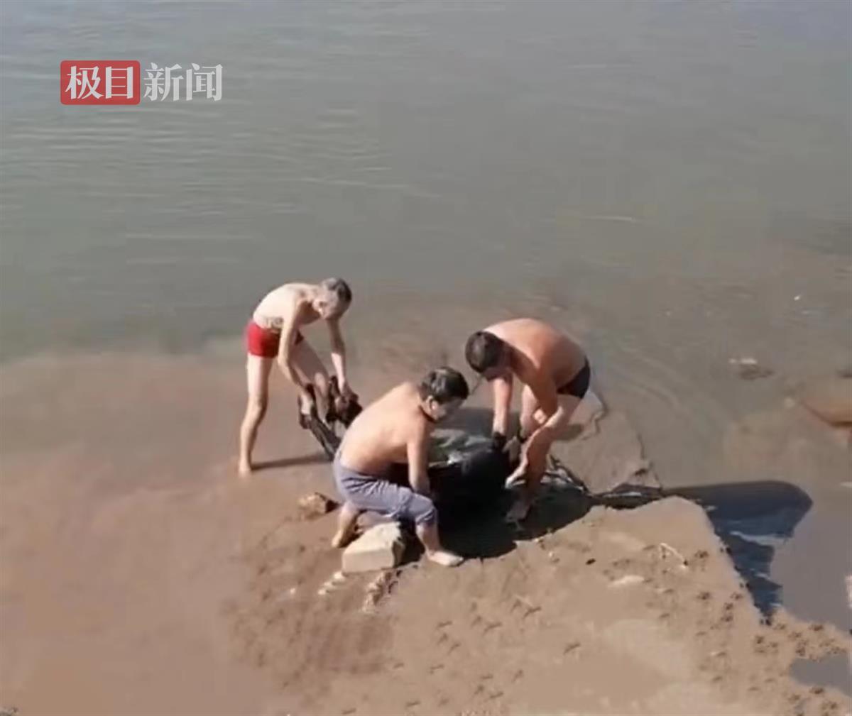 “江水很冷,快上来吧!”朱红兵在岸上劝导说。