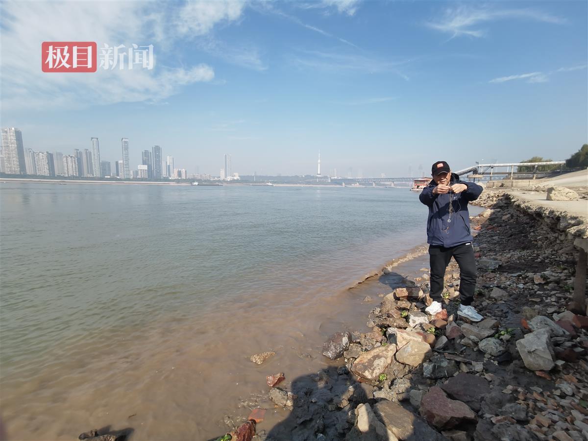 眼下长江武昌段烈女渡水域,枯水季来临,水位下降,露出了江滩。江水拍打着沙滩上的石块,来去匆匆。