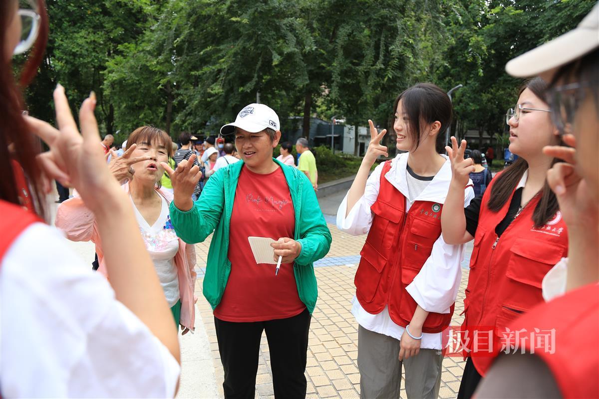 在国家不断规范手语表达的大环境下,潘淑文积极学习新的手语知识。极目新闻记者注意到,在这个由大学生志愿者和聋人组成的手语学习队伍里,潘淑文有着独特的教学方式。她每次教完手语单词后,就会把大家分成几个小组,确保每一个组既有无听力障碍的大学生志愿者,也有聋人,方便他们摸索着跟彼此交流。