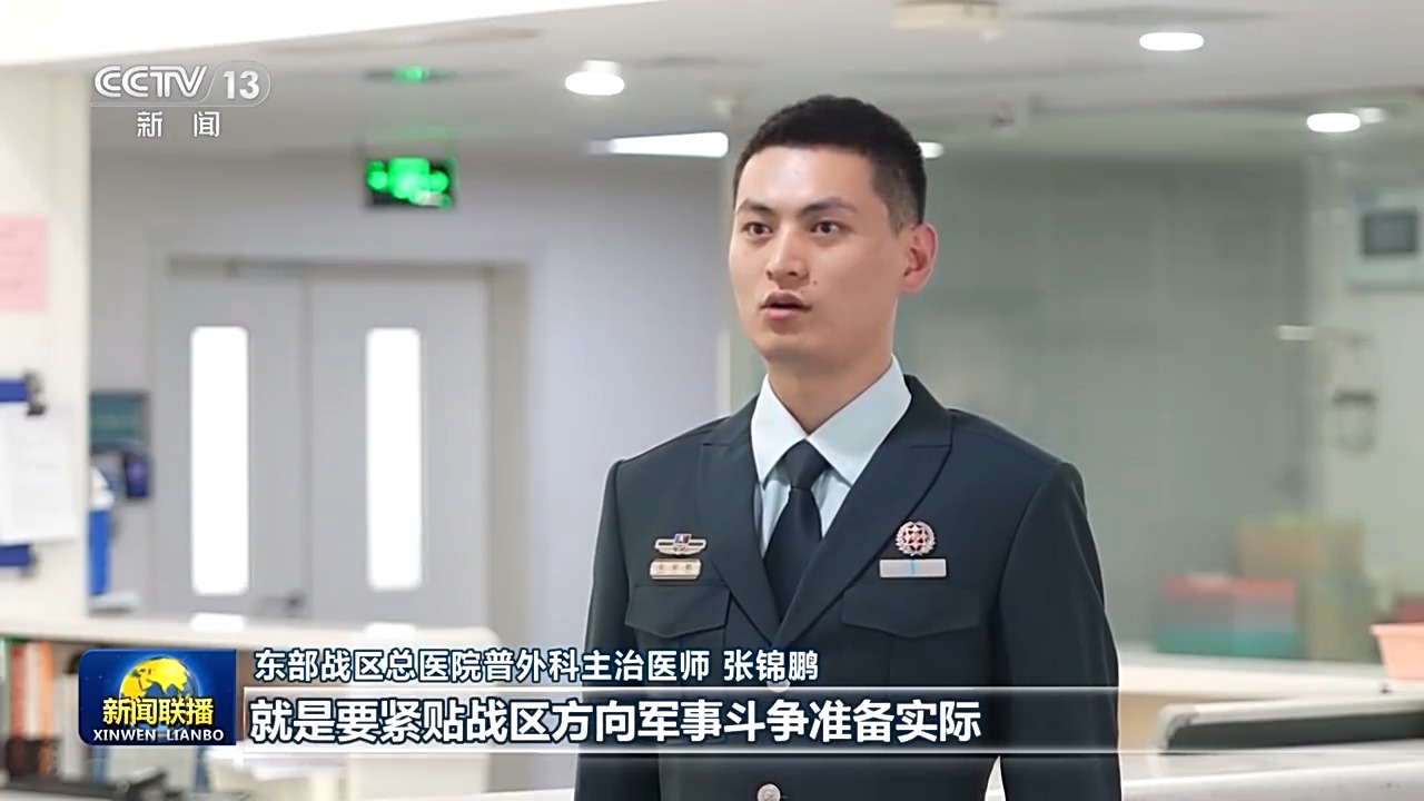 东部战区总医院普外科主治医师 张锦鹏:对我们总医院医务人员来说,就是要紧贴战区方向军事斗争准备实际,围绕平时应急保障、战时高效救治要求,扎实开展战创伤救治关键技术研究,强化不同作战行动、不同作战地域条件下的救护能力训练,着力提升战场救治水平。
