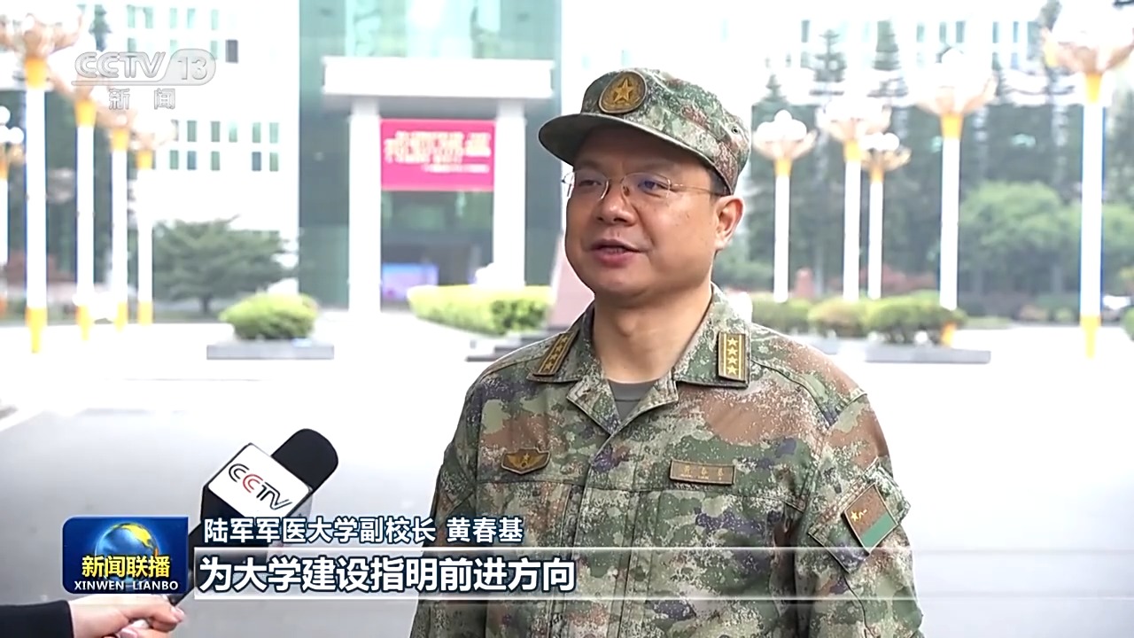 陆军军医大学副校长 黄春基:习主席亲临学校视察并作重要指示,为大学建设指明前进方向、提供根本遵循,全校师生员工备受鼓舞、倍感振奋。我们将锚定建设世界一流军医大学目标,把准办学育人方向,加强特色学科专业建设,坚持为战而医、为战而研,培养更多德才兼备的新时代红色军医,全面提高卫勤保障能力和服务部队质效。