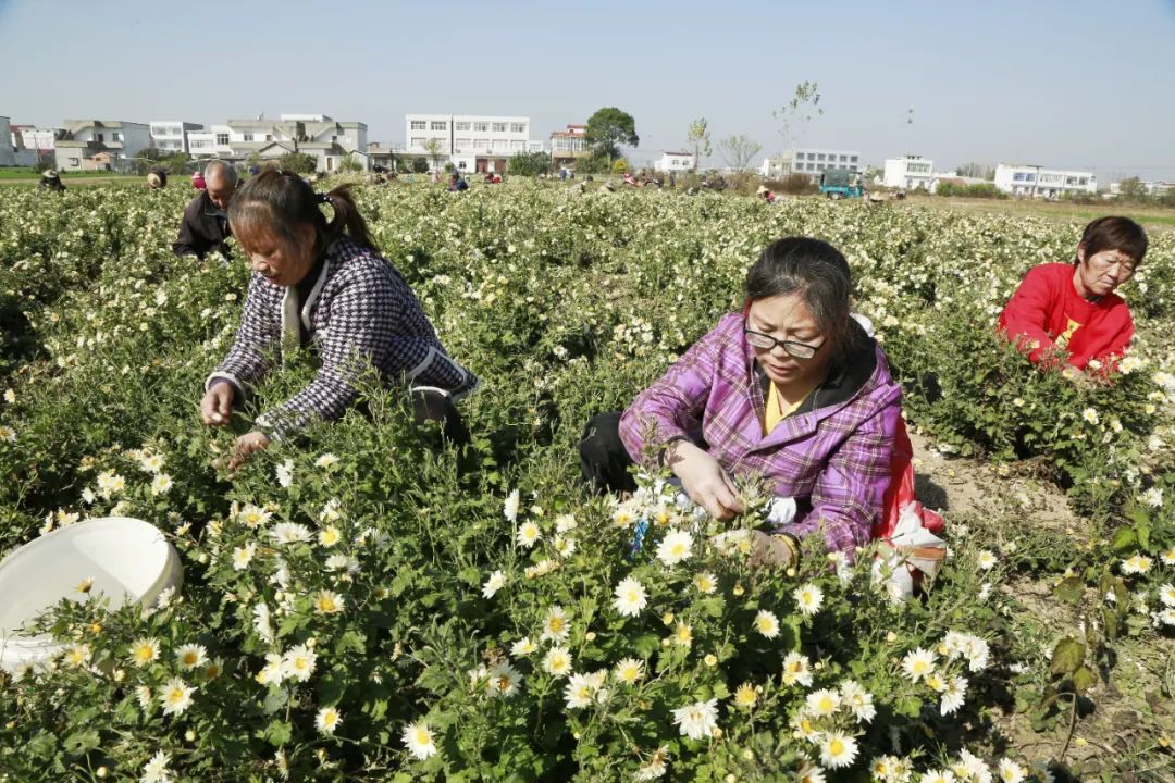 天门市彭市镇王桥村引进经营主体,发展菊花种植,实现村集体增收。(天门市融媒体中心记者刘银斌 摄)