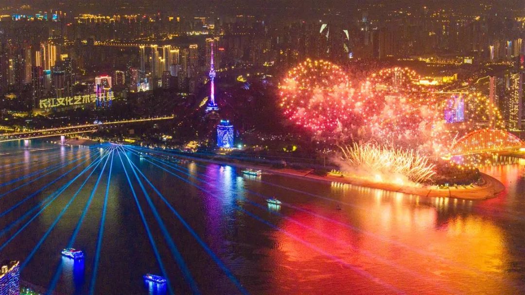 9月14日晚,灯火璀璨、光影交织,长江文化艺术季开幕式在武汉两江四岸壮丽上演。(何宇欣 摄)