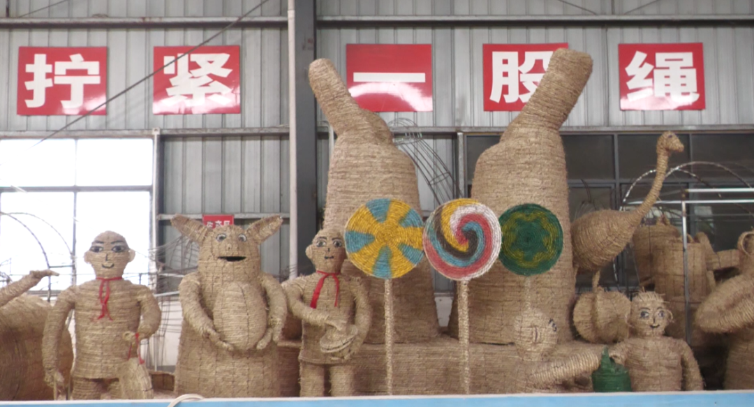 稻草大象憨态可掬,稻草小羊活泼可爱,稻草鹿群栩栩如生……步入安陆市正强工艺品有限责任公司,各式各样的草绳工艺品琳琅满目。它们全部取材于废弃秸秆,经过低茬收割、去杂晾晒,以及精细处理与手工编织,秸秆被赋予新的生命。
